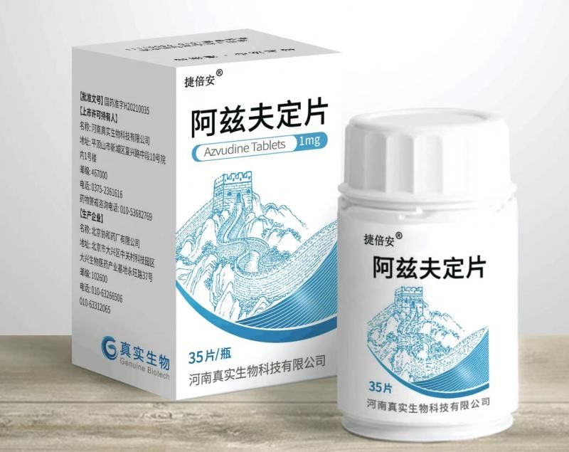 2021年7月20日,国家药监局已附条件批准河南真实生物科技阿兹夫定片与其他逆转录酶抑制剂联用治疗高病毒载量的成年HIV-1感染患者。2022年7月25日,国家药监局应急附条件批准真实生物阿兹夫定片增加新冠肺炎治疗适应症注册申请,用于治疗普通型新型冠状病毒肺炎(COVID-19)成年患者。8月9日,国家卫生健康委办公厅、国家中医药局办公室发布通知称,根据国家药监局附条件批准阿兹夫定片增加治疗新型冠状病毒肺炎适应症注册申请的审批意见,为进一步完善新型冠状病毒肺炎抗病毒治疗方案,经研究,将该药纳入《新型冠状病毒肺炎诊疗方案(第九版)》。根据《诊疗方案》,阿兹夫定片用于治疗普通型新型冠状病毒肺炎(COVID-19)成年患者。在用法用量为空腹整片吞服,每次5mg,每日1次,疗程至多不超过14天。